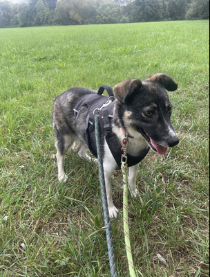 Elle est ok congénères, marche déjà en laisse et se montre douce malgré son passé inconnu.