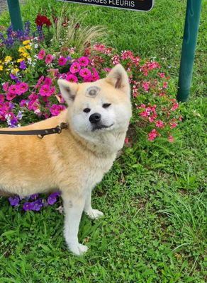 Femelle Akita Inu née le 9 janvier 2019 et arrivée au refuge le 4 juillet 2025.
